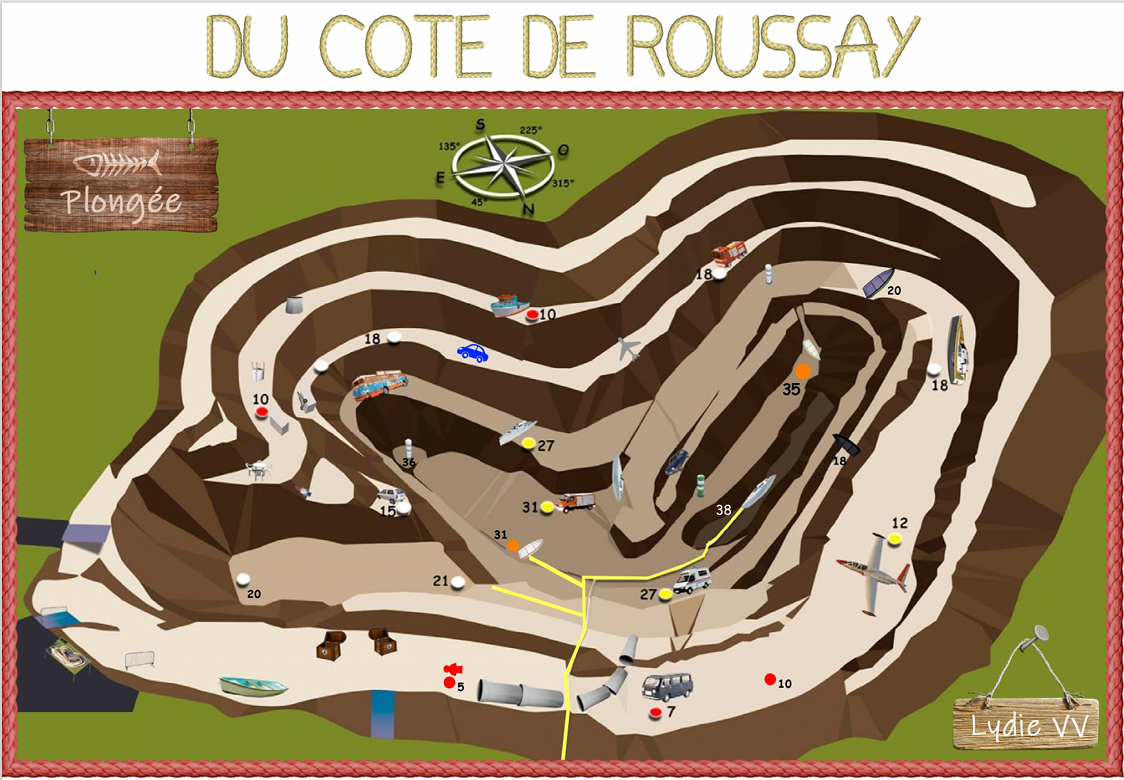 Un chemin à 20 m permet aux N1 encadrés et aux N2 autonomes de faire le tour en rendant visite à 8 épaves au minimum